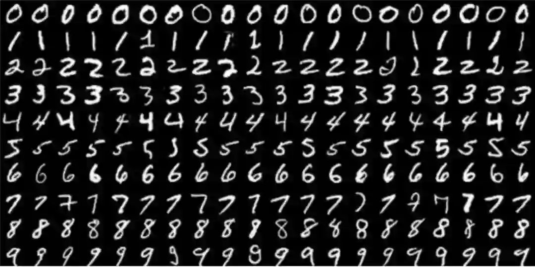 MNIST数据集是一个手写阿拉伯数字图像识别数据集,图片分辨率为 20x20 灰度图图片,包含‘0 - 9’ 十组手写手写阿拉伯数字的图片。其中,训练样本 60000 ,测试样本 10000,数据为图片的像素点值,作者已经对数据集进行了压缩。