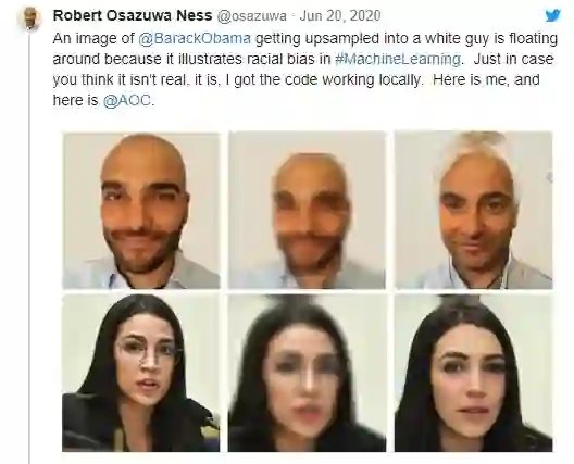一石激起千层浪,尤其是在这个特殊时期,有色人种被还原成白人的事挑起了大家对于 AI 系统产生偏见(bias)的批判,也再次警醒人们,AI 技术带有偏见所带来的潜在危机。