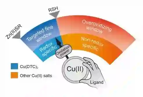 锌和铜都是生命体不可或缺的微量元素。哺乳动物体内很多重要的酶和蛋白质的核心功能单元都具有锌硫配位键。其中,在众多生理过程中起了关键作用的锌指蛋白编码序列在全基因中占有异常高的比例,达到了约1%。但是,锌硫配位单元却容易被以二价铜为代表的氧化剂所氧化破坏。因此,好氧生物体经过长期的进化,构筑了以细胞内高浓度的硫醇和NAD(P)H为基础的还原性防护机制,通过对进入细胞内的氧化剂进行还原淬灭,为锌硫蛋白等易受氧化损伤的关键生理功能位点提供严密的还原性保护,从而抑制了氧化性环境带来的有害损伤。通俗而言,这一机制的功能类似于保护计算机系统免受病毒攻击的防火墙。在经典生物化学认知范式里,二价铜离子进入细胞后会被硫醇/NAD(P)H还原成一价铜离子,从而失去了其对锌硫配位单元固有的氧化破坏能力。