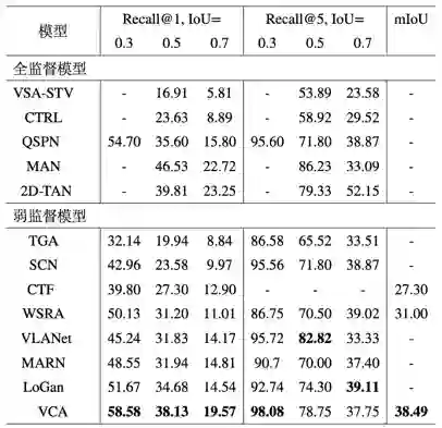 表1 VCA在Charades-STA 数据集上与其他方法的对比