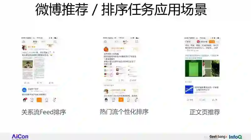 这三个场景在微博上是典型的信息流排序,或者是推荐的使用场景。