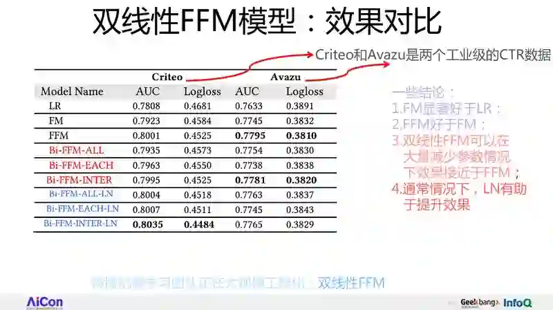 所以我们可以下结论:双线性效果是可以达到 FFM 相当,或者说超过性能的,Layer Norm 有提升作用。我们现在正在大规模工程化这个模型。