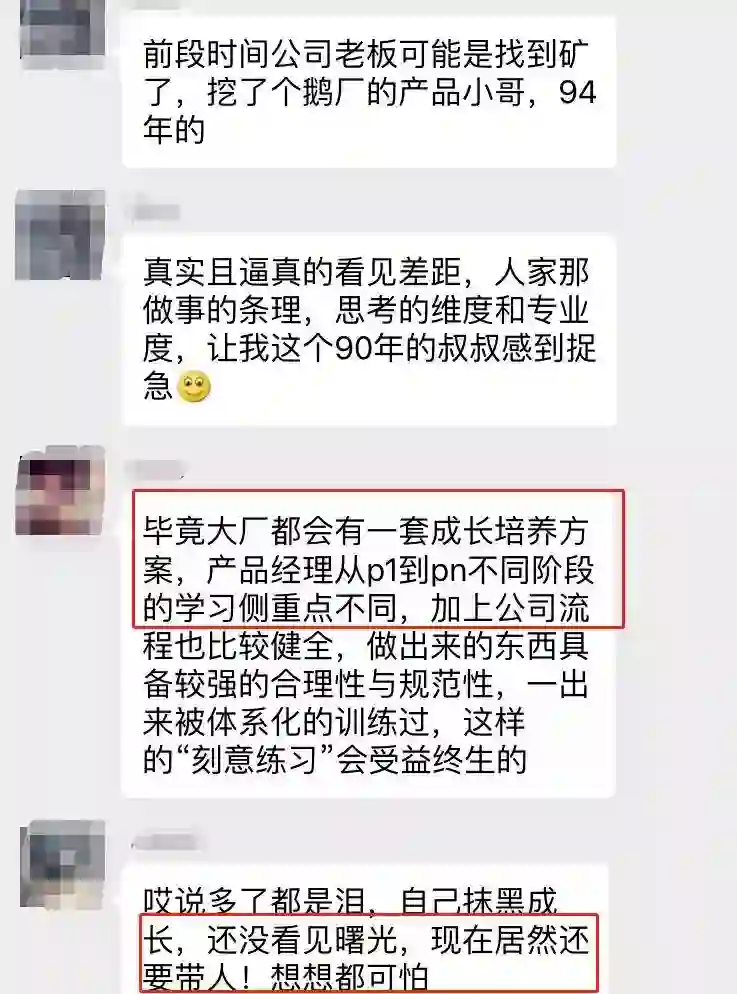 比如:在专业的公司,对于产品经理都会有一套成长培养方案,从P1到Pn不同阶段,学习工作的侧重点也完全不一样。