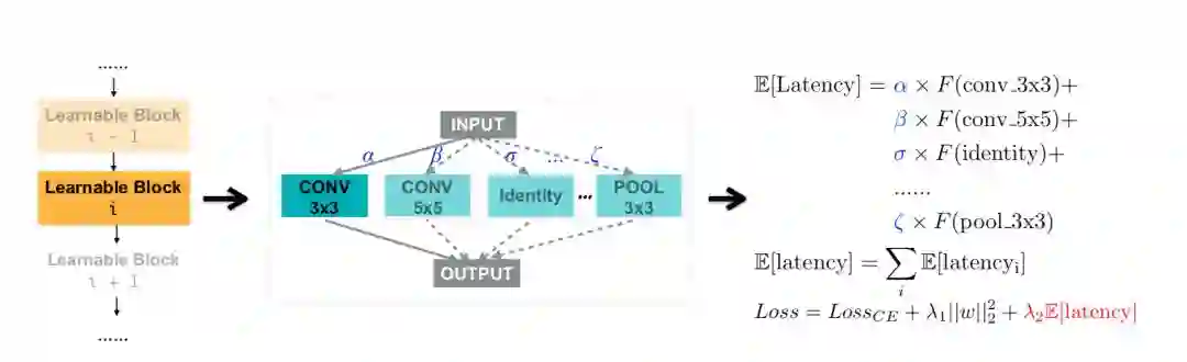 如上图所示,我们将网络结构的延迟建模为关于神经网络的连续函数。通过引入一个新的延迟损失,我们可以直接使用梯度来对其进行优化。