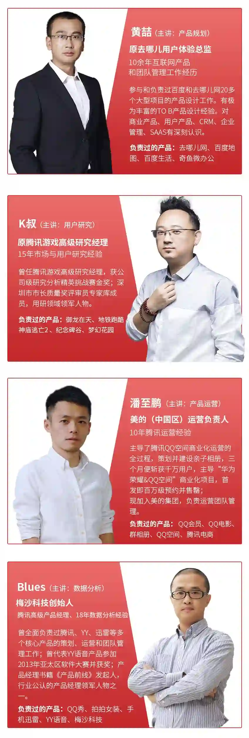 来自腾讯、百度、迅雷等大厂产品总监级导师,操盘过亿级用户产品,专业资深!