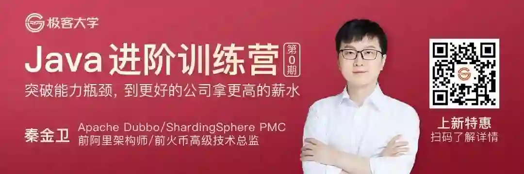 你好,我是极客大学 Java 进阶训练营的班主任爽爽。Java 进阶训练营是我们联合 Apache Dubbo/ShardingSphere PMC,前阿里架构师秦金卫推出的一门以实现职业进阶、提升开发技能为主要导向的高强度直播课程。