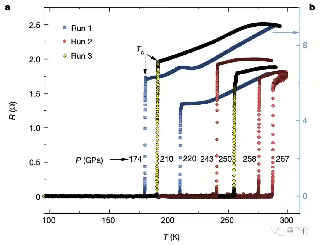 在175万个大气压下,样品冷却至-93°C就会发生超导转变。如果继续增加压力,超导转变的临界温度会不断提高。