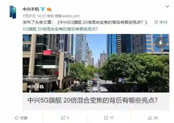 今日下午,我国的首款5G手机——华为Mate 20 X 5G版就将正式亮相了,这也预示着我国正式进入了5G商用的元年。而除了该机之外,中兴的首款5G旗舰Axon 10 Pro 5G版也与此前抢先开启预约,有望与华为Mate 20 X 5G版争夺5G手机的首发上市。现在有最新消息,中兴手机官微高调晒出了该机的20倍变焦样张,效果极其震撼。
