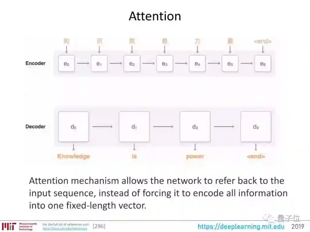 接下来发展出了注意力(Attention)。这种机制,不强迫网络将所有输入信息编码城一个固定长度的向量,在解码过程中还能重新引入输入序列,还能学习输入序列和输出序列中哪一部分互相关联。