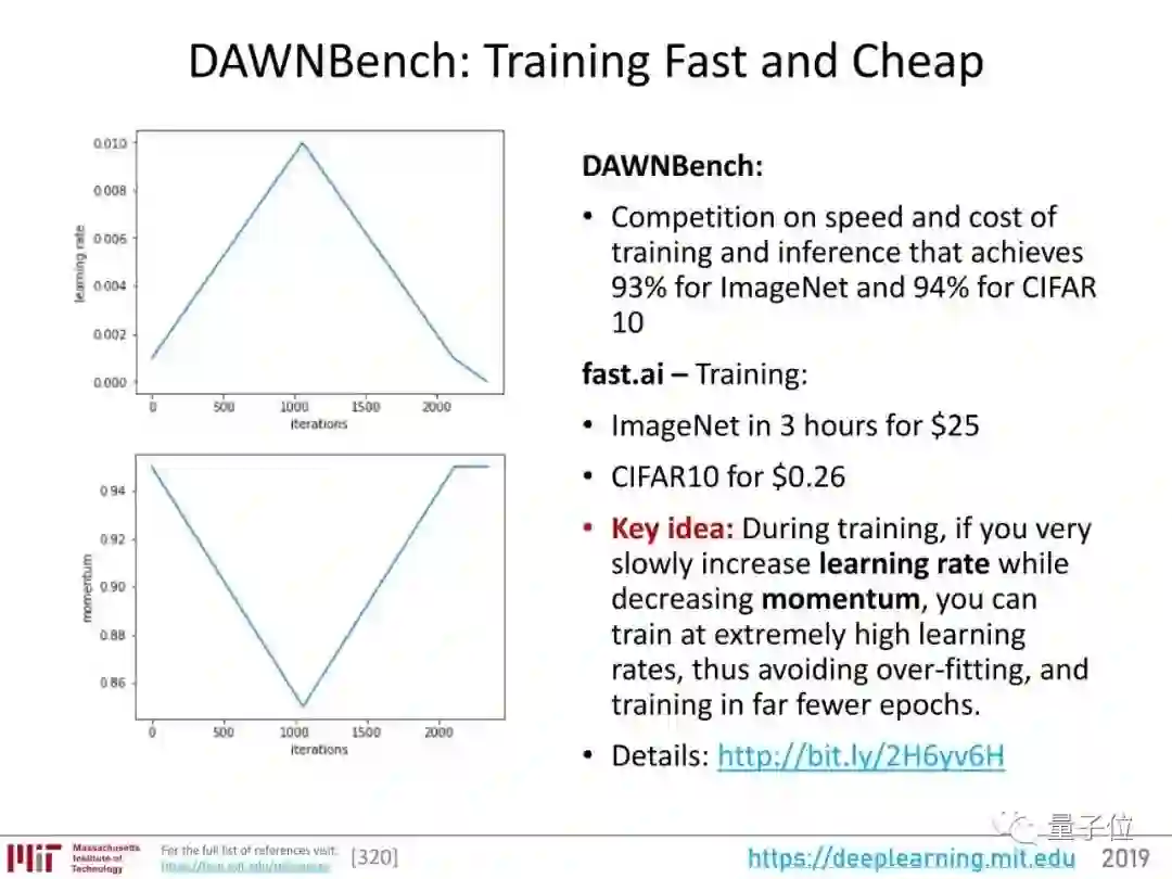 在快速廉价这方面,fast.ai有很好的成绩。他们用租来的亚马逊AWS的云计算资源,18分钟在ImageNet上将图像分类模型训练到了93%的准确率。