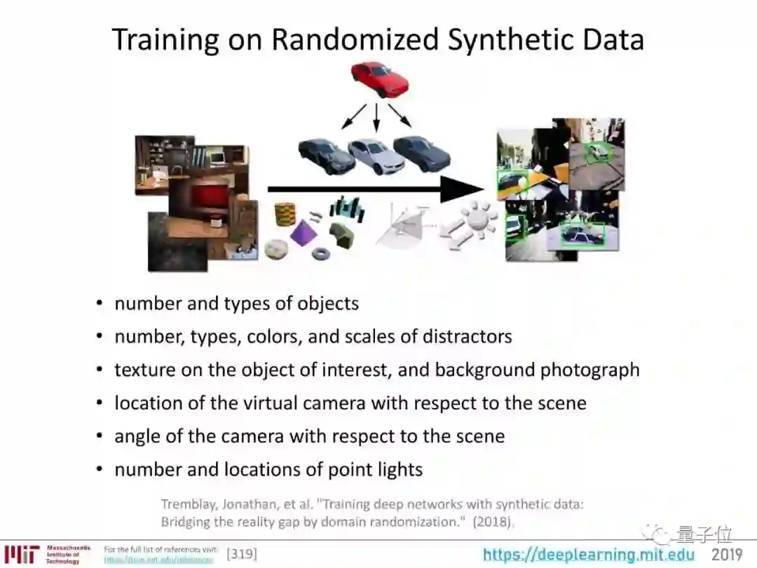合成数据还非常灵活多变,比如说汽车、屋子,都能合成出各种各样的数量、类型、颜色、纹理、背景、距离、视角、灯光等等。