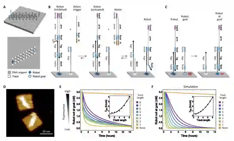 他们开发出了一种全自动的分子机器,可在纳米尺度上执行任务。这些微型机器人由一个单链 DNA做成,可自动地二维表面“走来走去”,并可将某些分子“挑来捡去”,最后按照指定的位置再把它们放下。