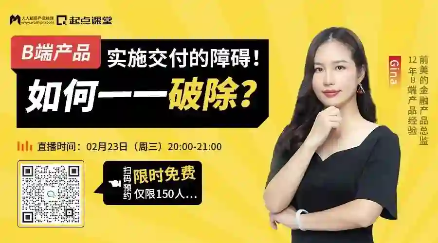 来听直播~前美的金融产品总监教你一套B端产品实施交付方法~扫码即可预约听课