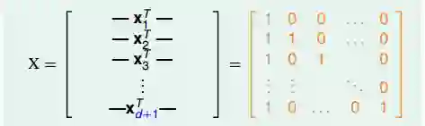矩阵中,每一行代表一个inputs,每个inputs是d+1维的,共有d+1个inputs。这里构造的X很明显是可逆的。
