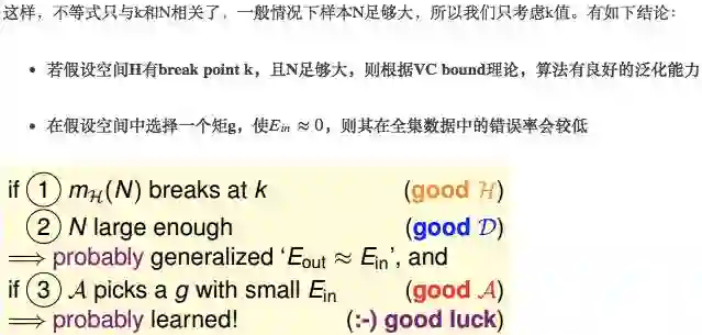 首先,我们知道如果一个假设空间H有break point k,那么它的成长函数是有界的,它的上界称为Bound function。