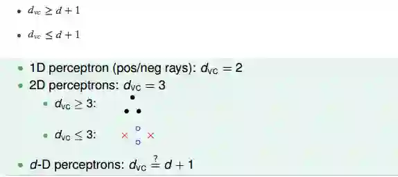 在d维里,我们只要找到某一类的d+1个inputs可以被shatter的话,那么必然得到≥d+1。