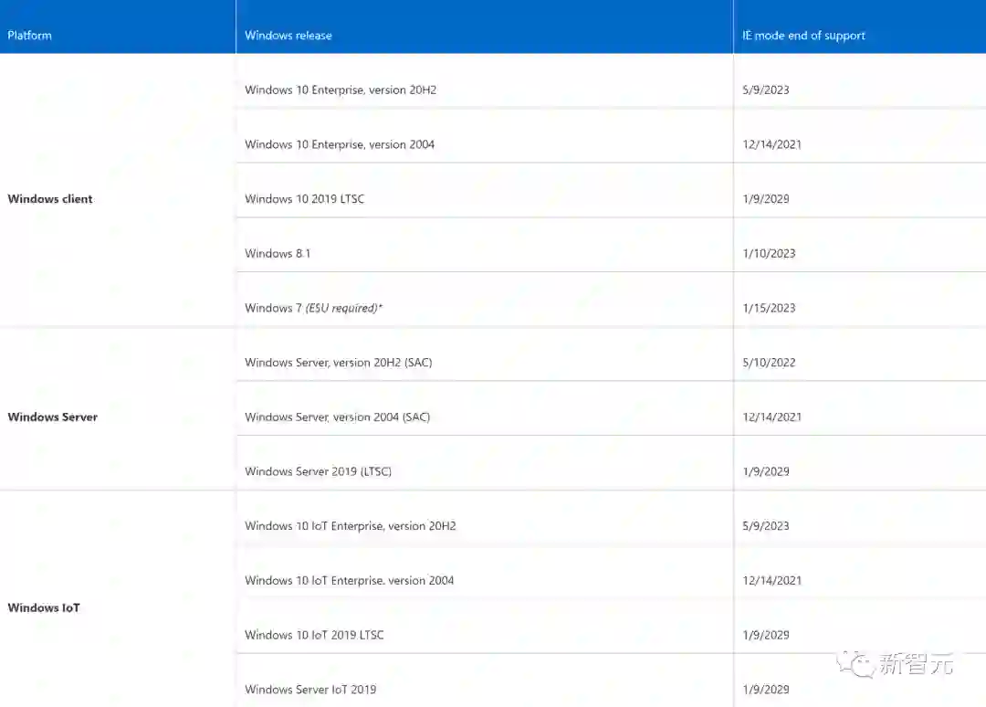 说到IE模式,微软还透露了不同Windows版本的IE模式结束支持的时间: