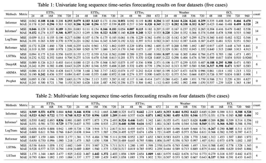在固定size的窗口下的rolling预测中,我们在时刻 的输入为,我们需要预测对应的输出序列,LSTF问题鼓励输出一个更长的输出,特征维度不再依赖于univariate例子( ).