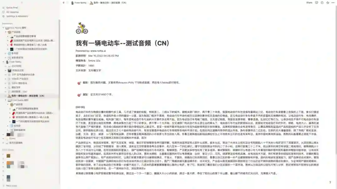 我准备了中英文/两组素材分别导入 Notta 和讯飞听见里进行转写。