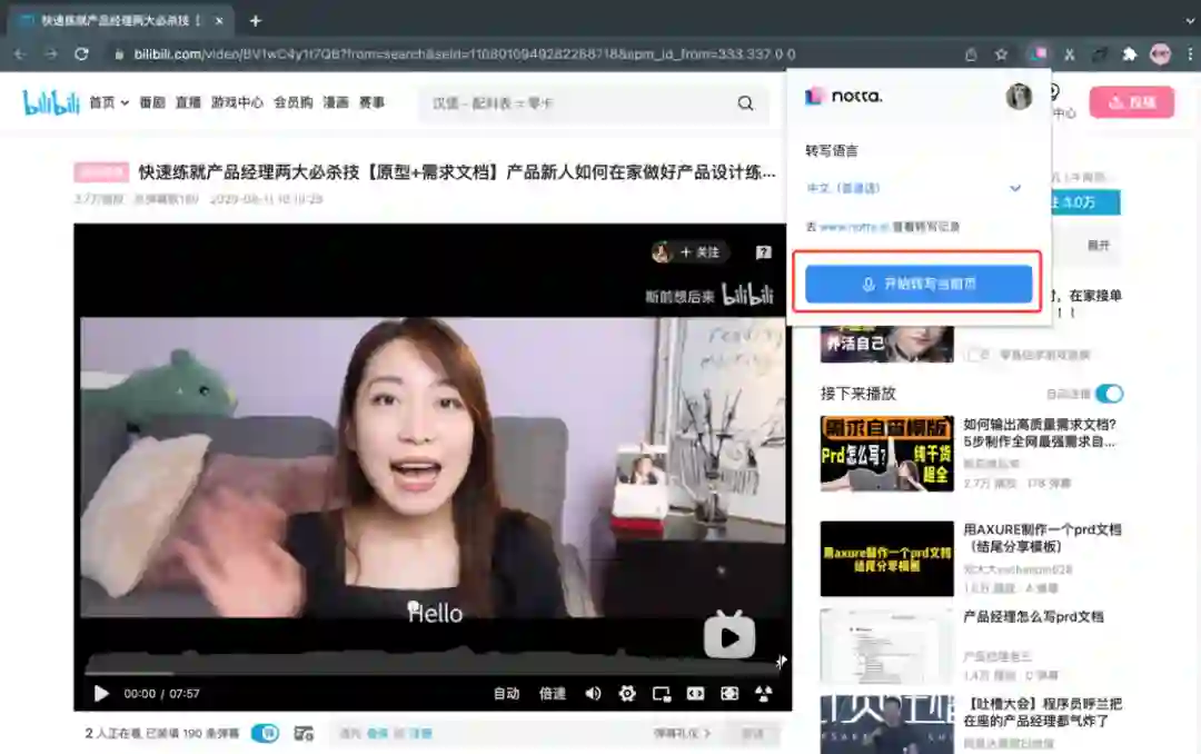 我现在常常把在小破站看到的技能技巧视频,通过 Notta Chrome 插件录制转写,推送到 Notion,保存在自己的知识库;UP 主的有趣观点,也可以录制转写后推送到 Notion 做成文献笔记。