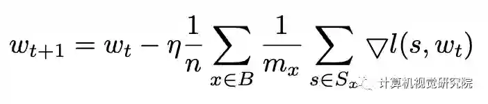 为了简化,假设mx对于小批量B中的每个图像x是相同的。关注个体训练样本s,上式可以改写为: