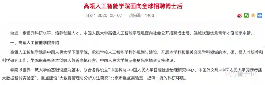 去年,人民大学高瓴人工智能学院招聘启事一经发布,业内外热议。