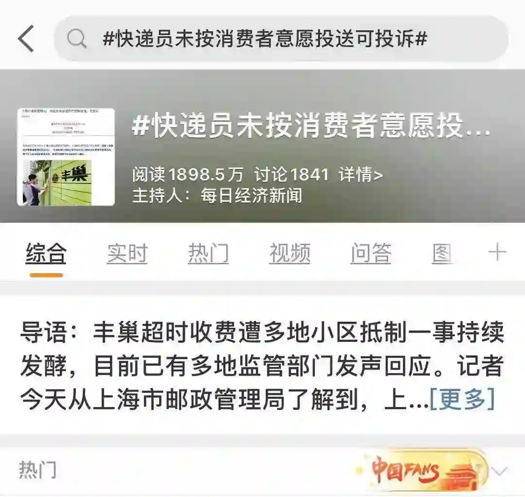 而张明明跟消费者的矛盾在于,所处的立场不同,观点也不同。在微博上,有关#快递员未按消费者意愿投送可投诉#的话题已经达到1898.5万的阅读,不少网友发帖称,快递员不送货已经违法违规,不送货上门就可以投诉。2018年5月施行的《快递暂行条例》,是他们要求送货上门的依据。
