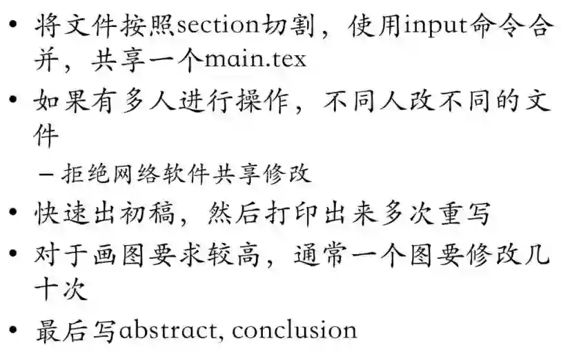 1.学一手好的 LaTex,建议模板化、流程化、标准化。同时观念上将写论文作为科研的一部分——只有做好了科研,才能写出好论文。