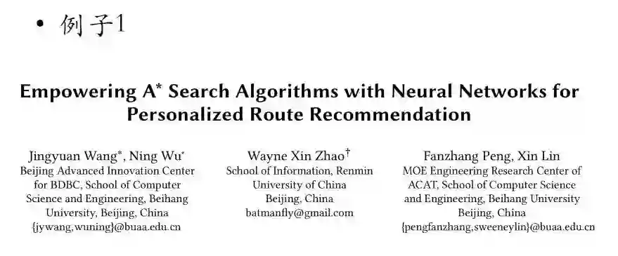 首先,赵鑫给我们介绍了两篇主要的示例论文,第 1 篇发表在 SIGKDD 2019 上,主题是基于背景信息的智能化路径搜索算法。作者将从起点到终点的路径搜索算法定义为 A* 算法,原始的 A* 算法会分解启发式搜索值为两个部分,其中 g 用来计算历史消耗,h 用来预估未来消耗,论文的新思路是采用了图神经网络进行计算,包括采用深度学习方法来计算其中的 g 以及 h。