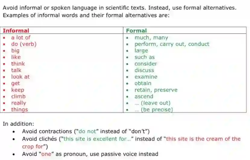 此外,要使用英语词汇习惯的正式用法,避免缩写等(如下图)。