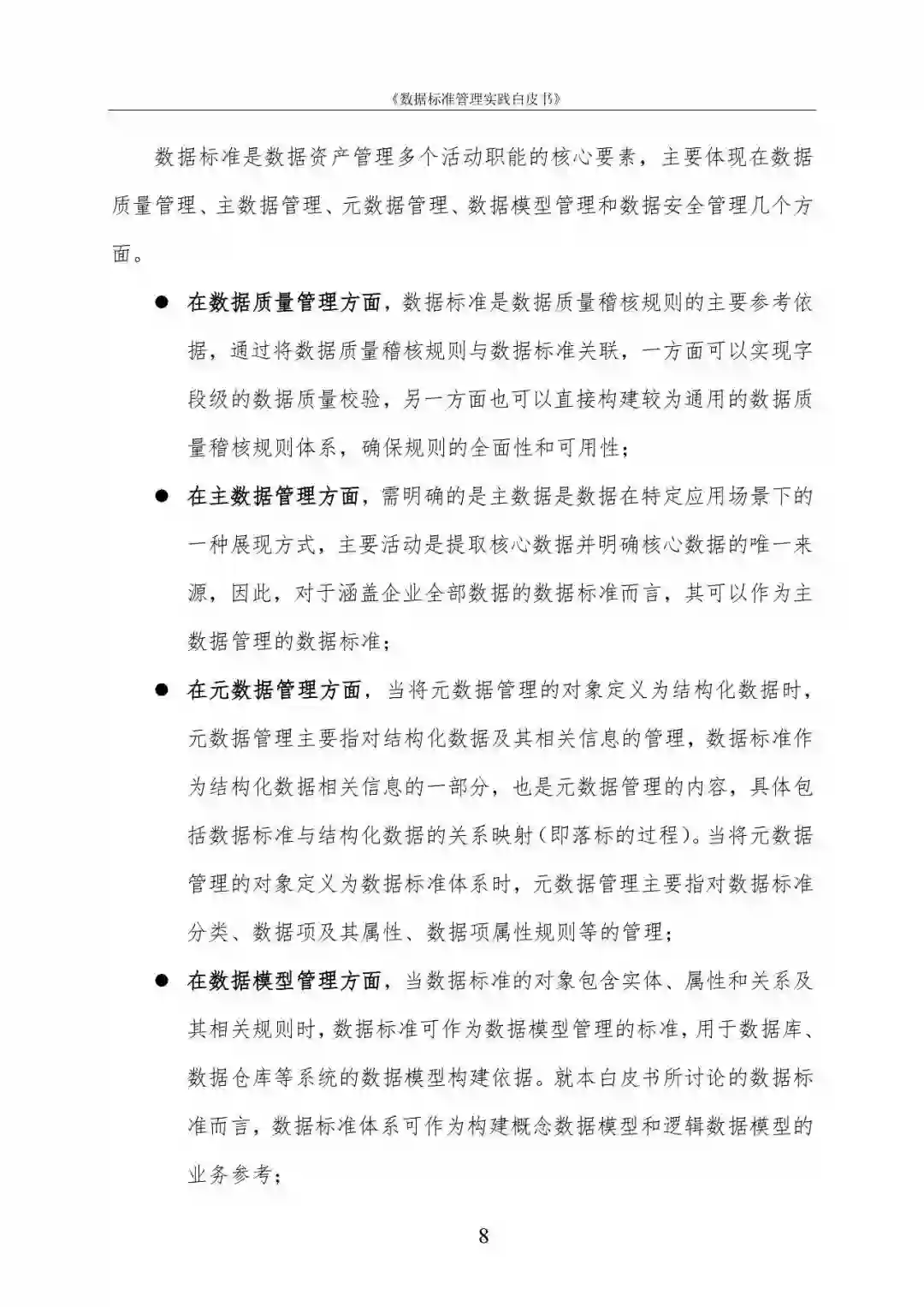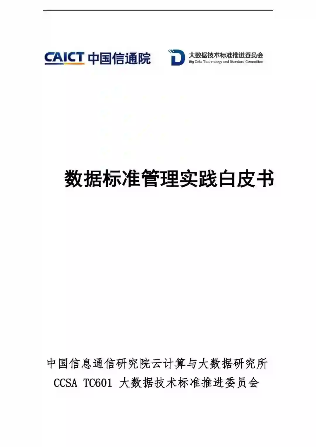 数据标准管理是规范数据标准的制定和实施的一系列活动,是数据资产管理的核心活动之一,对于政府和企业提升数据质量、厘清数据构成、打通数据孤岛、加快数据流通、释放数据价值有着至关重要的作用。