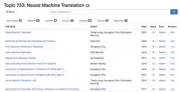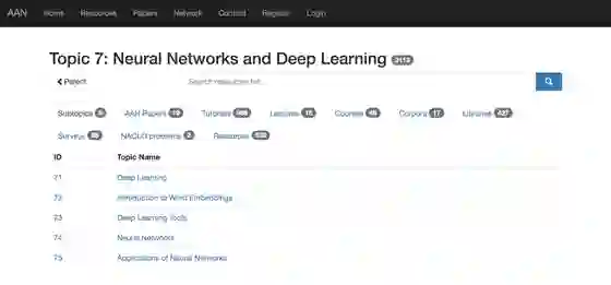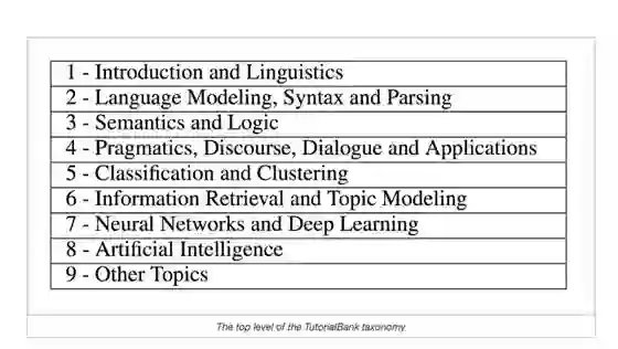 TutorialBank是一个人工收集的数据库,它包含了NLP,人工智能(AI),机器学习(ML)和信息检索(IR)等相关领域的约6,500条资源。几年来,我们精选了与这些领域相关的优质资源。其中包括了surveys, tutorials, libraries, codebases等。我们觉得除了学术论文之外,学生们还从阅读教程(tutorials)中学到很多东西,所以我们专注于论文以外的资源。对于每个资源,我们使用元数据来填充数据库(比如论文中所述的资源类型),并根据我们自己对300多个主题的分类方法对每个资源进行分类。这些主题涵盖了广泛的领域,从基础数据结构、算法到数学和语言学,以及在深度学习、机器翻译和强化学习等方面的最先进的技术。下面列出了一些主题: