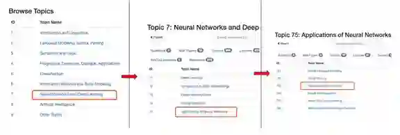 第二种方式通过多级检索目录查询感兴趣的领域: