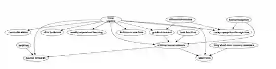 如果你不知道从哪一个主题开始,怎么办呢?为了解决这个问题,我们标注了哪些主题是其他主题的先决条件;你应该学习哪些主题来更好地理解一个给定的主题。我们的图表的一部分如下所示: