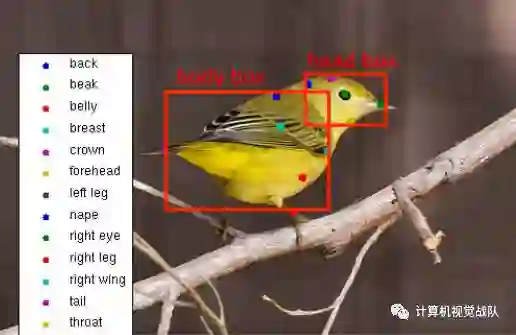 数据集:CUB-200-2011 (12k张图像,200类,15个点)