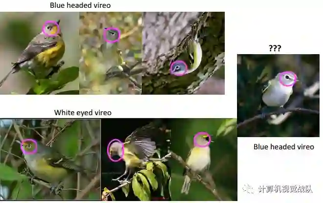 两类不同的鸟,但是差别很小,主要应该就在眼部,怎么通过一只小鸟去寻找到对应的类别呢?