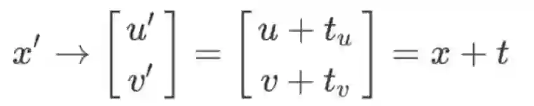 比如我们要完成将2D坐标点x=[u,v]' 平移t=[tu, tv],如果用非齐次方法的话,是用如下的加法