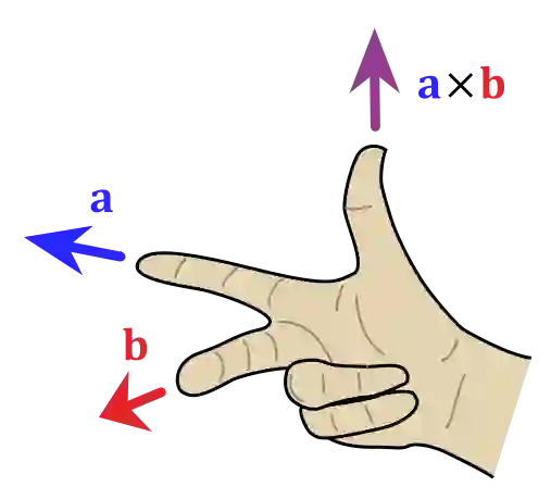a x b 是与向量 a, b都垂直的向量,其方向通过右手定则(见下图)决定。
