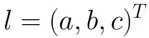 在2D平面上,一条直线 l 可以用方程 ax + by + c = 0 来表示,该直线用向量表示的话一般记做