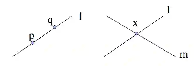 证明:两点p, q 的叉乘 可以表示 过两点的直线l,即 l = p x q