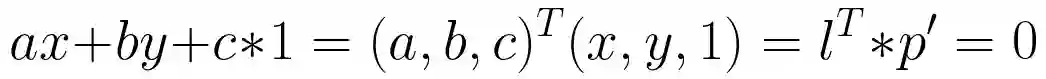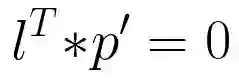 因此,点p在直线l上的充分必要条件就是 直线l 与p的齐次坐标p'的内积: