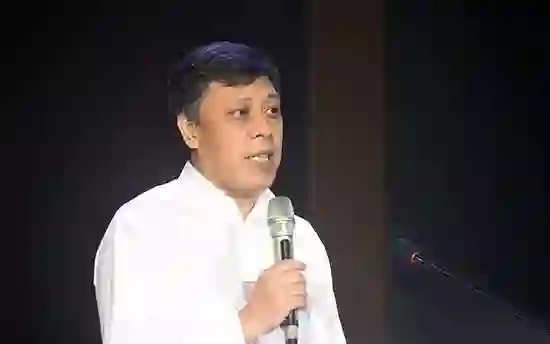 7月19日,潘教峰应邀在深圳举办的中科院第一届“率先杯”未来技术创新大赛军民融合高峰论坛上做主旨报告(资料图片)。