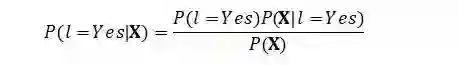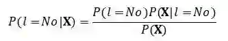 我们接下来的问题是,如何计算后验概率P(l=Yes|X)和P(l=No|X)。我们将其带入贝叶斯公式: