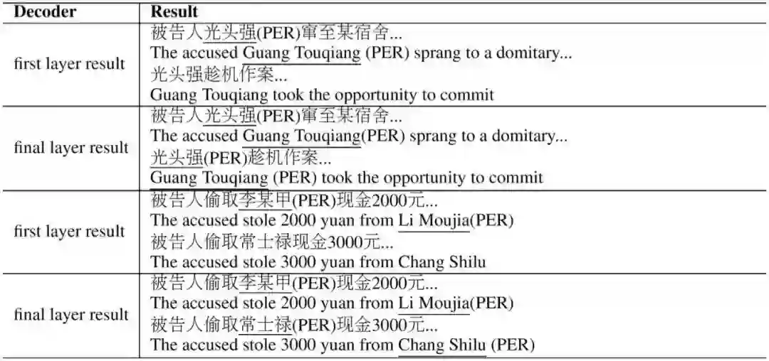 通过上面的操作,每一层都可以得到上一层识别出的实体的表示,除此之外,层与层之间没有其他必然的联系。将每一层单独来看,我们相当于得到了该文本中都有哪些是实体以及它们为什么是实体这类非常重要的先验知识。