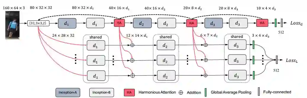 摘要:Existing person re-identification (re-id) methods either assume the availability of well-aligned person bounding box images as model input or rely on constrained attention selection mechanisms to calibrate misaligned images. They are therefore sub-optimal for re-id matching in arbitrarily aligned person images potentially with large human pose variations and unconstrained auto-detection errors. In this work, we show the advantages of jointly learning attention selection and feature representation in a Convolutional Neural Network (CNN) by maximising the complementary information of different levels of visual attention subject to re-id discriminative learning constraints. Specifically, we formulate a novel Harmonious Attention CNN (HA-CNN) model for joint learning of soft pixel attention and hard regional attention along with simultaneous optimisation of feature representations, dedicated to optimise person re-id in uncontrolled (misaligned) images. Extensive comparative evaluations validate the superiority of this new HA-CNN model for person re-id over a wide variety of state-of-the-art methods on three large-scale benchmarks including CUHK03, Market-1501, and DukeMTMC-ReID.