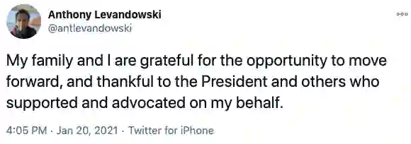 紧接着2021年20日,美国前总统特朗普完全赦免了40多岁的Anthony Levandowski。