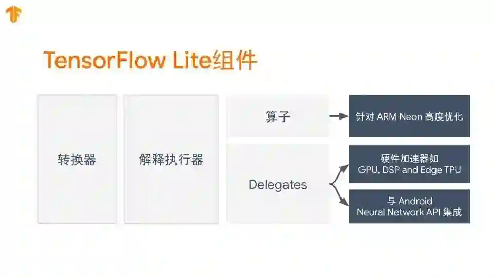 第五集我们将讲解 TFLite 的各个组件:转化器,解释执行器,算子以及硬件加速器接口,并简单介绍 benckmark 性能测试工具: