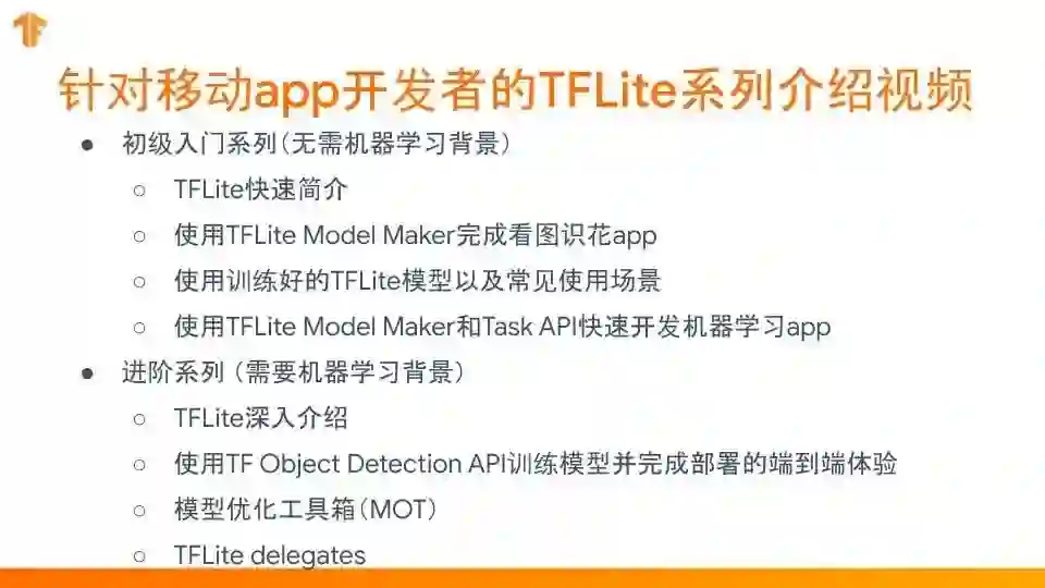 为了帮助大家更好的学习和掌握 TensorFlow Lite,我们制作了一系列八集视频教程,并配合相应的 codelab 实操环节。