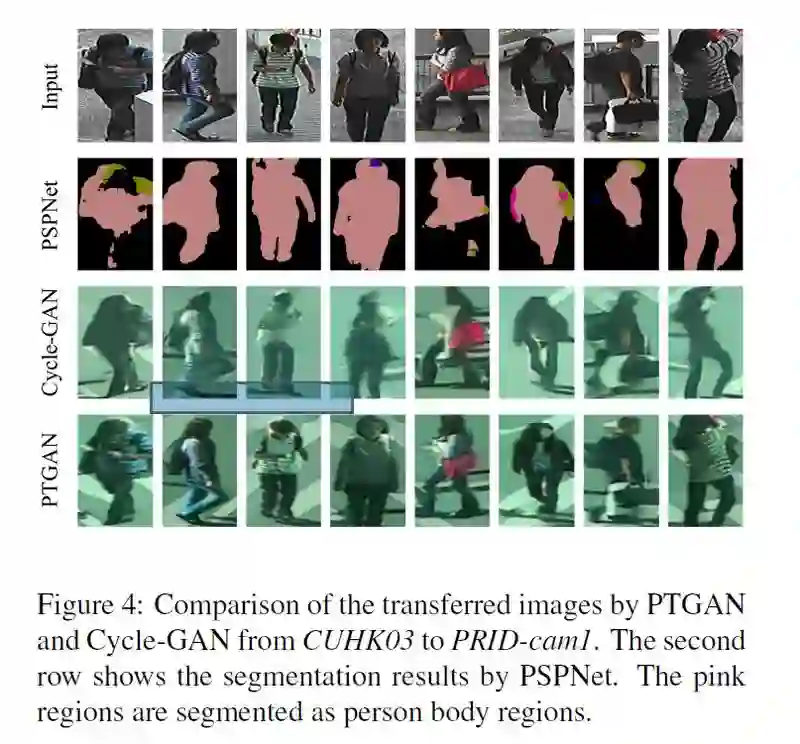 本文提出了一种针对于 ReID 的生成对抗网络 PTGAN,可以实现不同 ReID 数据集的行人图片迁移,在保证行人本体前景不变的情况下,将背景转换成期望的数据集 style。