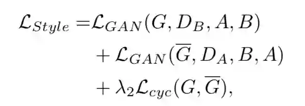 其中 LStyle 代表生成的风格损失,或者说 domain 损失,就是生成的图像是否像新的数据集风格。LID 代表生成图像的 ID 损失,就是生成的图像是否和原始图像是同一个人。λ1 是平衡两个损失的权重。下面的关键就是看这两个损失怎么定义。